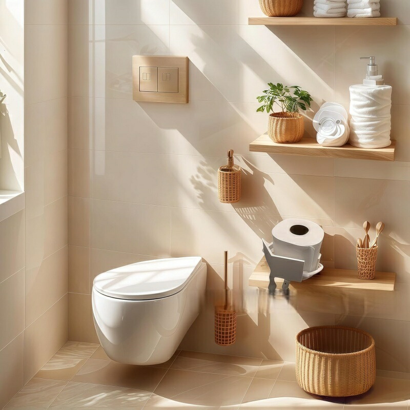 多目的使用: トイレットペーパーホルダーとしてだけでなく、ティッシュロールオーガナイザーとしても使用できる実用的なアイテムです