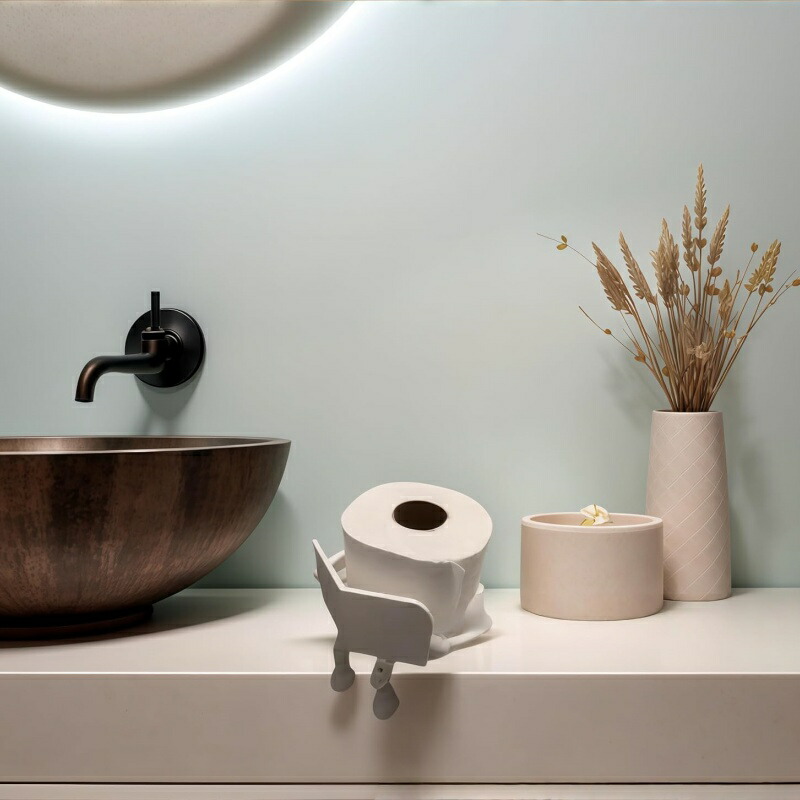 ユニークなデザイン: 読書をしている人物をモチーフにした漫画風のクリエイティブな形状で、バスルームやリビングルームをおしゃれに演出します